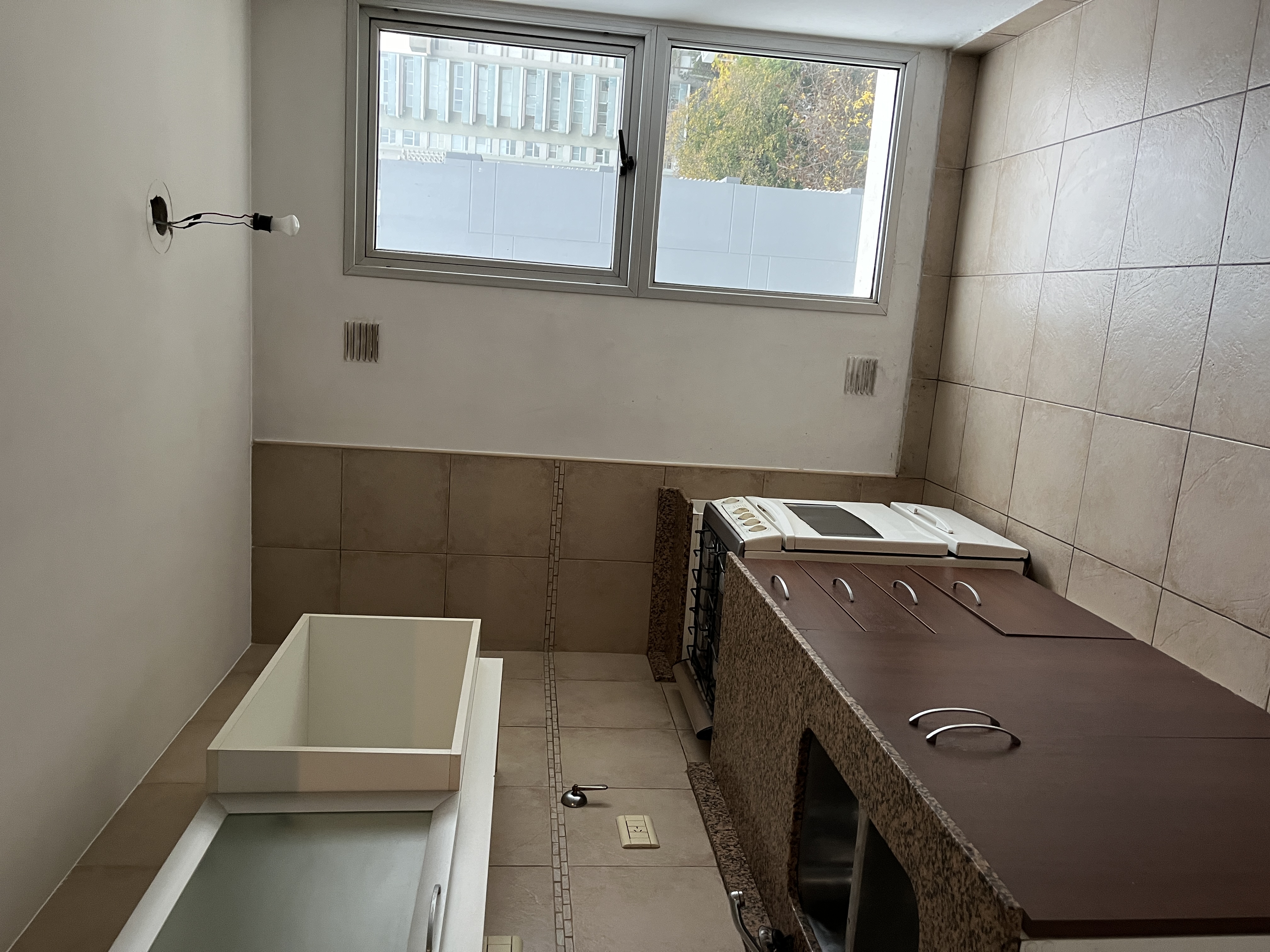 DEPARTAMENTO en alquiler 2 ambientes - consta de 1 dormitorio con placard - baño completo con bañera - cocina con mesada bajo mesada y alacenas - living comedor - balcón.